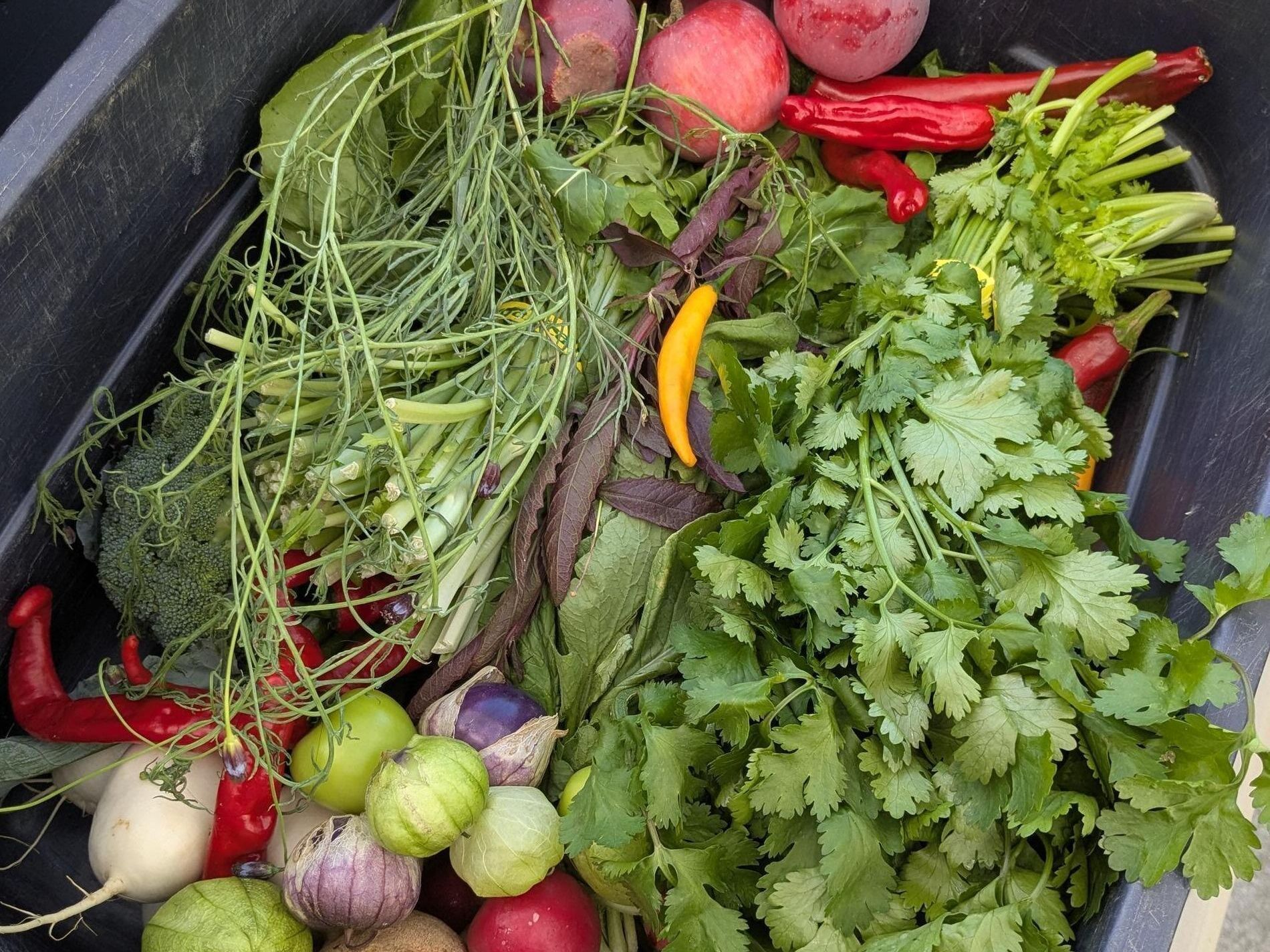 One way we do this is by coordinating and delivering weekly food boxes to community members. Fresh produce is sourced from local farmers and directly from Growing Ancestral Roots' community gardens. We also raise chickens for eggs and meat for the boxes.